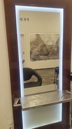 Nabízíme kadeřnické obsluhy v kombinaci sklo a dřevo vysoký lesk s podsvícením a odkládacím stolkem. Montováne na zeď. Cena za kus 6000,- pouze osobní odběr. K dispozici 2.1.2019